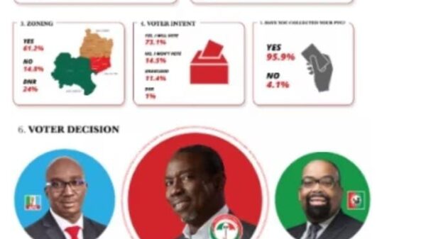 A new poll conducted by EBDA, audited and published by BusinessDay, has revealed that Asue Ighodalo, the Peoples Democratic Party (PDP) governorship candidate, is...