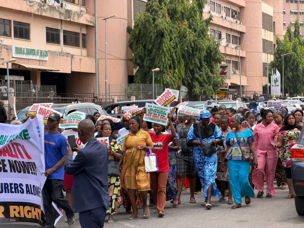 Addressing journalists during the demonstration, Eriba alleged that the enforcement of the ban contravenes the provisions of the National Alcohol Policy approved by the Federal Ministry of Health and currently in operation. He further claimed that the action runs contrary to a presidential directive restraining NAFDAC from disrupting the operations of affected companies pending the outcome of a joint committee set up to review the matter.
