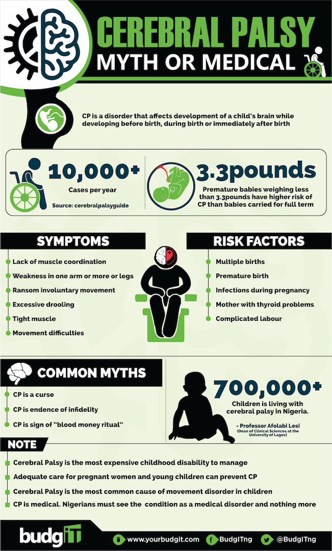According to a study on Cerebral Palsy in Sagamu, Nigeria, it says the condition is mainly associated with perinatal events and low socio-economic status – continuing education of health workers and traditional birth attendants against the argument suggesting an ailment exclusively affected by the elites.