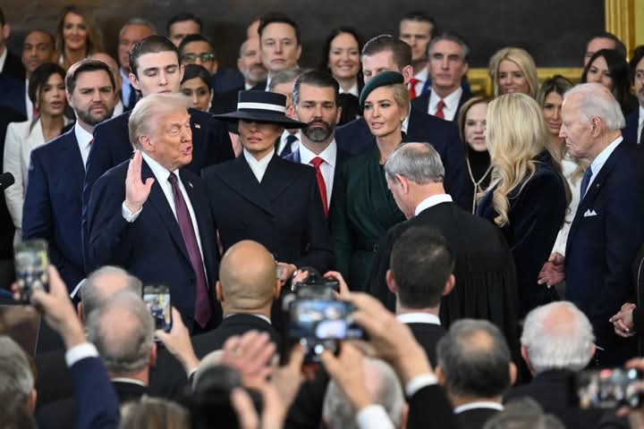 Subsequently, Chief Justice John Roberts administered the oath of office to Trump at 12 p.m. ET, with First Lady Melania Trump by his side during the ceremony.